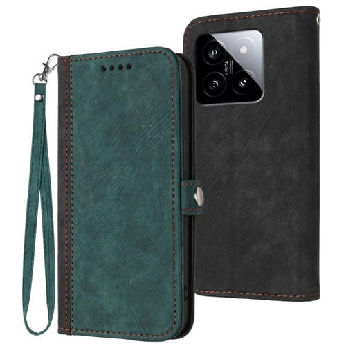 Para Xiaomi 14 Hebilla Lateral Doble Pliegue Correa De Mano Funda De Cuero Para Teléfono (Verde Oscuro)
