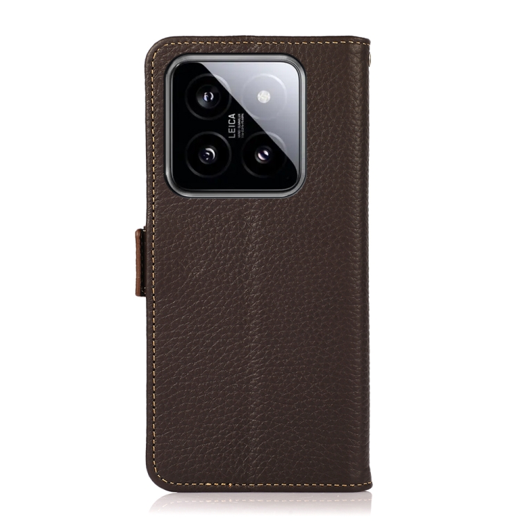 Para Xiaomi 14 Khazneh Funda Para Teléfono Rfid De Cuero Genuino Litchi Lateral Magnético (Marrón)