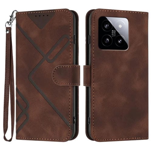 Para Xiaomi 14 Line Pattern Skin Feel Funda De Cuero Para Teléfono (Café)