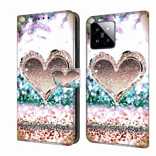 Para Xiaomi 14 Pro Crystal 3D Funda Protectora De Cuero Para Teléfono A Prueba De Golpes (Corazón De Diamante Rosa)