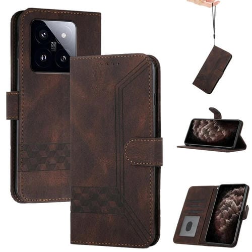 Para Xiaomi 14 Pro Cubic Skin Feel Funda De Cuero Con Tapa Para Teléfono (Marrón)