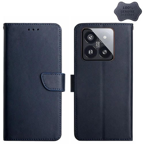 Para Xiaomi 14 Pro Funda De Teléfono Con Tapa A Prueba De Huellas Dactilares De Cuero Genuino (Azul)