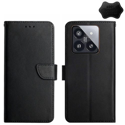 Para Xiaomi 14 Pro Funda De Teléfono Con Tapa A Prueba De Huellas Dactilares De Cuero Genuino (Negro)