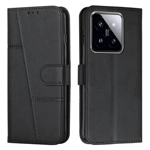 Para Xiaomi 14 Pro Funda De Teléfono De Cuero Con Hebilla Y Textura De Becerro Con Costura (Negro)