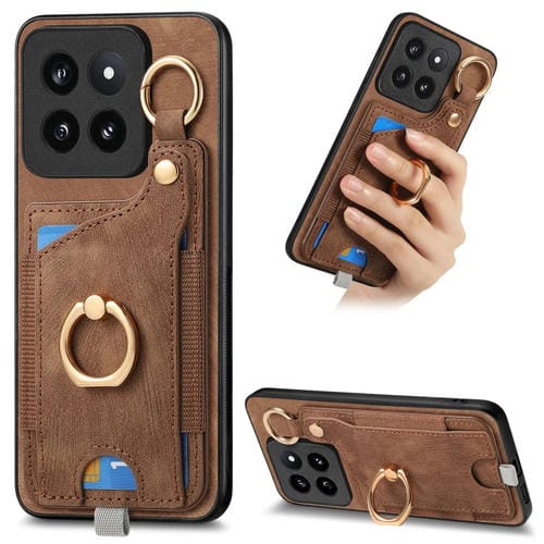 Para Xiaomi 14 Pro Funda Para Teléfono Con Bolsa Para Tarjeta Con Anillo Y Sensación De Piel Retro Con Lazo Para Colgar (Marrón)