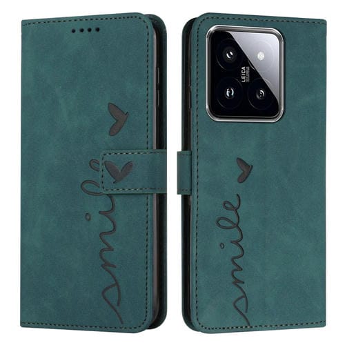 Para Xiaomi 14 Pro Skin Feel Heart Funda Para Teléfono De Cuero En Relieve Con Cordón Largo (Verde)