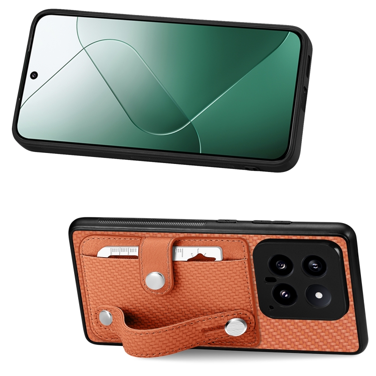 Para Xiaomi 14 Pulsera Kickstand Card Wallet Back Funda Para Teléfono Con Cuchillo Para Herramientas (Marrón)