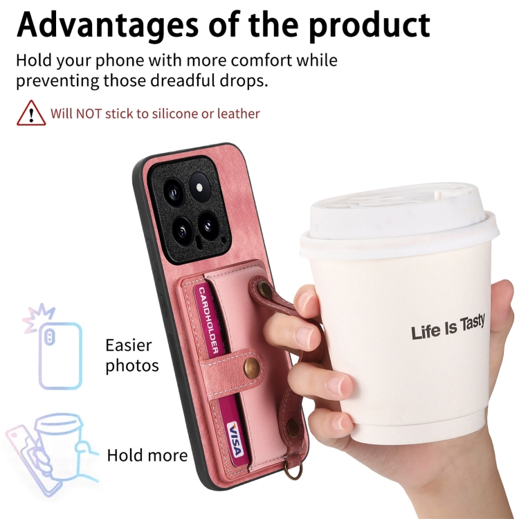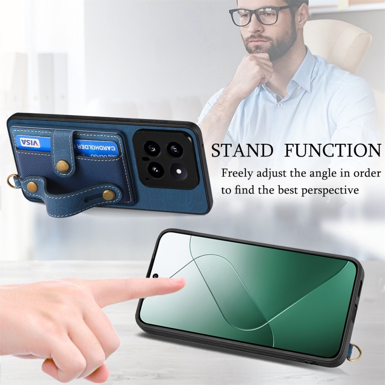 Para Xiaomi 14 Retro Cross Muñequera Monedero Funda Trasera De Cuero Para Teléfono (Púrpura)