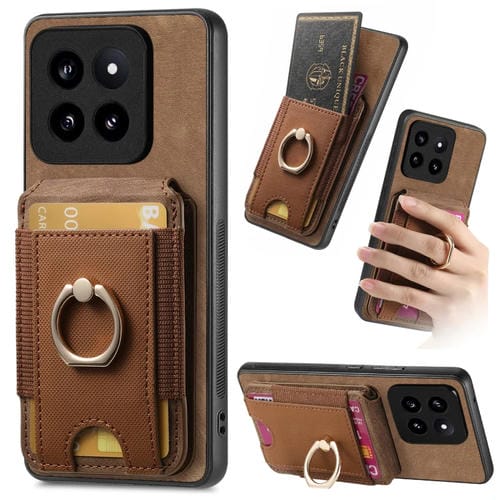 Para Xiaomi 14 Retro Splitable Magnetic Stand Card Bag Funda De Cuero Para Teléfono (Marrón)