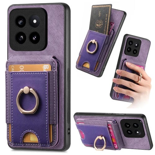 Para Xiaomi 14 Retro Splitable Magnetic Stand Card Bag Funda De Cuero Para Teléfono (Púrpura)