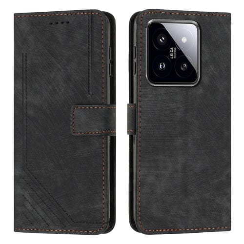 Para Xiaomi 14 Skin Feel Funda De Cuero Con Patrón De Rayas Y Cordón Largo (Negro)