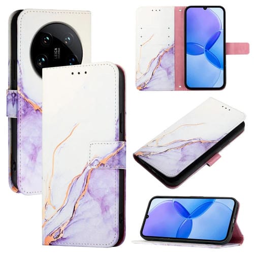 Para Xiaomi 14 Ultra Pt003 Funda De Teléfono De Cuero Con Tapa Con Patrón De Mármol (Blanco Y Morado)