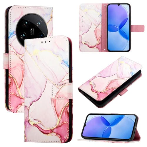 Para Xiaomi 14 Ultra Pt003 Funda De Teléfono De Cuero Con Tapa Con Patrón De Mármol (Oro Rosa)