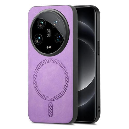 Para Xiaomi 14 Ultra Solid Color Retro Magsafe Pu Funda Para Teléfono Con Contraportada (Púrpura)