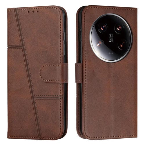Para Xiaomi 14 Ultra Stitching Becerro Textura Hebilla Funda De Cuero Para Teléfono (Marrón)