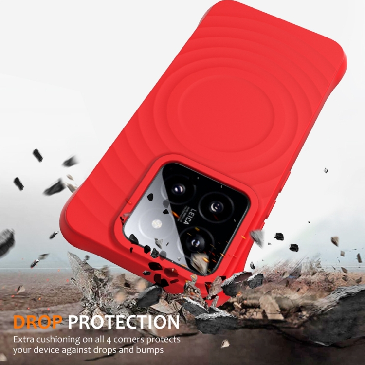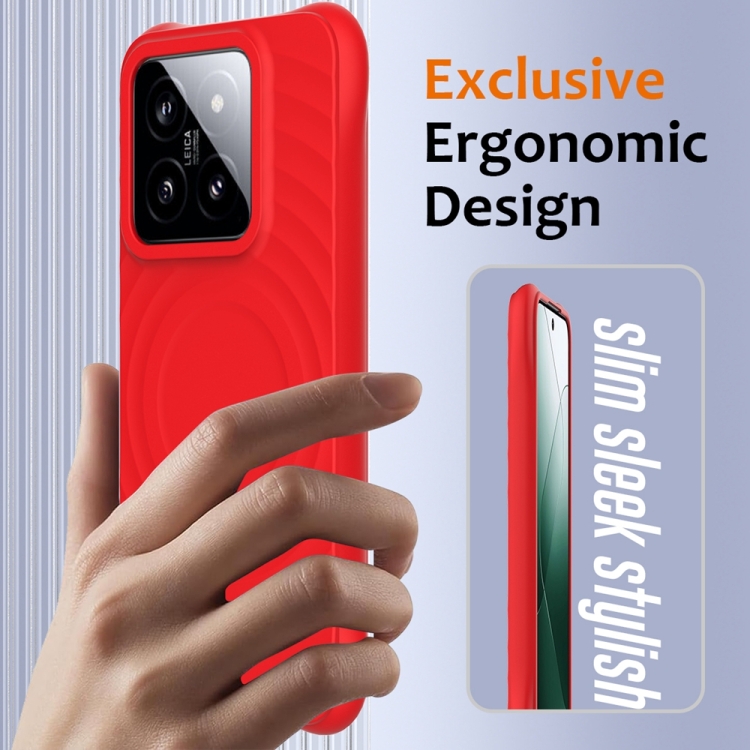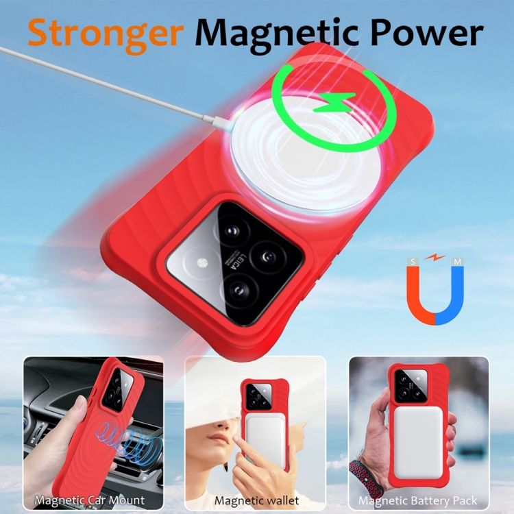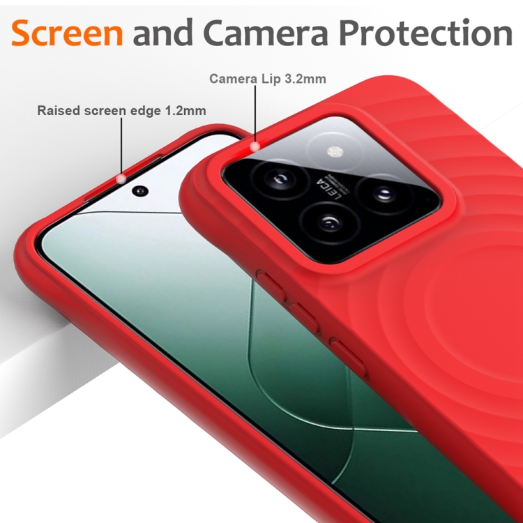 Para Xiaomi 14 Wave Texture Magsafe Funda De Teléfono De Silicona Líquida Magnética (Rojo)