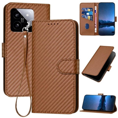 Para Xiaomi 14 Yx0070 Funda De Cuero Con Hebilla De Fibra De Carbono Y Cordón (Café)