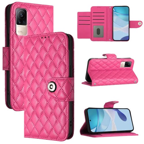 Para Xiaomi Civi 1S Funda de Cuero con Tapa con Textura Rómbica y Cordón (Rojo Rosa)