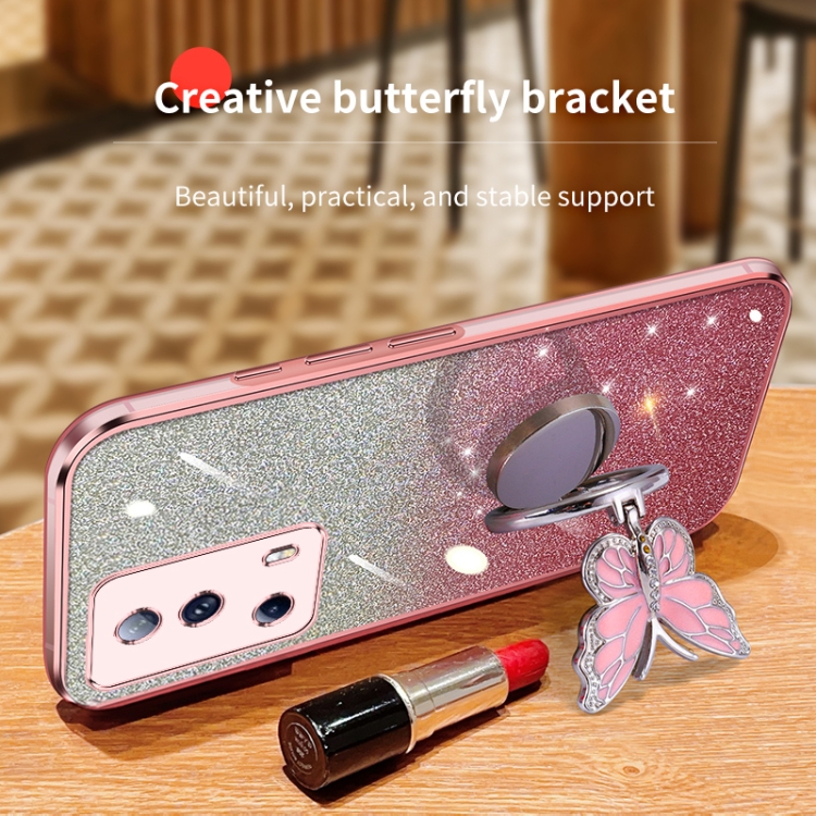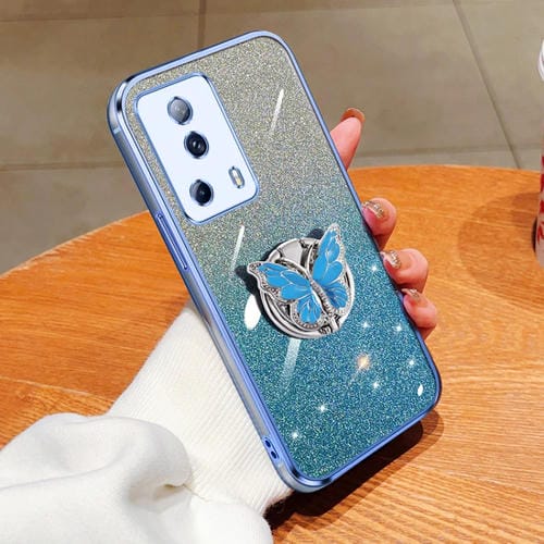 Para Xiaomi Civi 2 Funda para Teléfono de TPU con Soporte de Mariposa con Brillo Degradado Plateado (Azul Sierra)