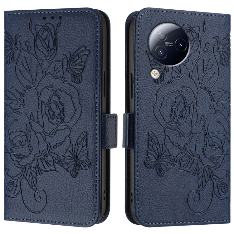 Para Xiaomi Civi 3 5G Funda de Teléfono de Cuero Antirrobo Rfid con Relieve Rosa (Azul Oscuro)