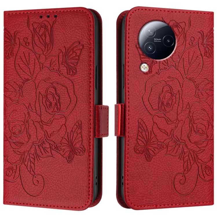 Para Xiaomi Civi 3 5G Funda de Teléfono de Cuero Antirrobo Rfid con Relieve Rosa (Rojo)