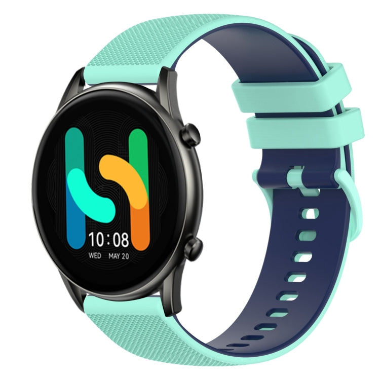 Banda de Reloj de Silicona 22mm para Xiaomi Haylou RT2 LS10 Dos Colores a Cuadros (Verde Azulado + Azul)