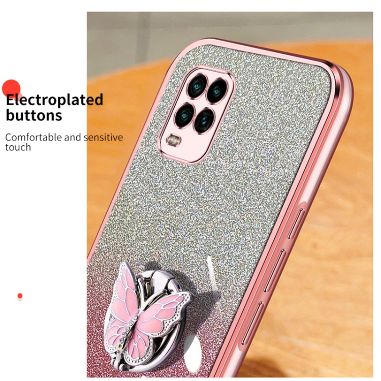 Para Xiaomi Mi 10 Lite Funda para Teléfono de TPU con Soporte de Mariposa con Brillo Degradado Plateado (Púrpura)