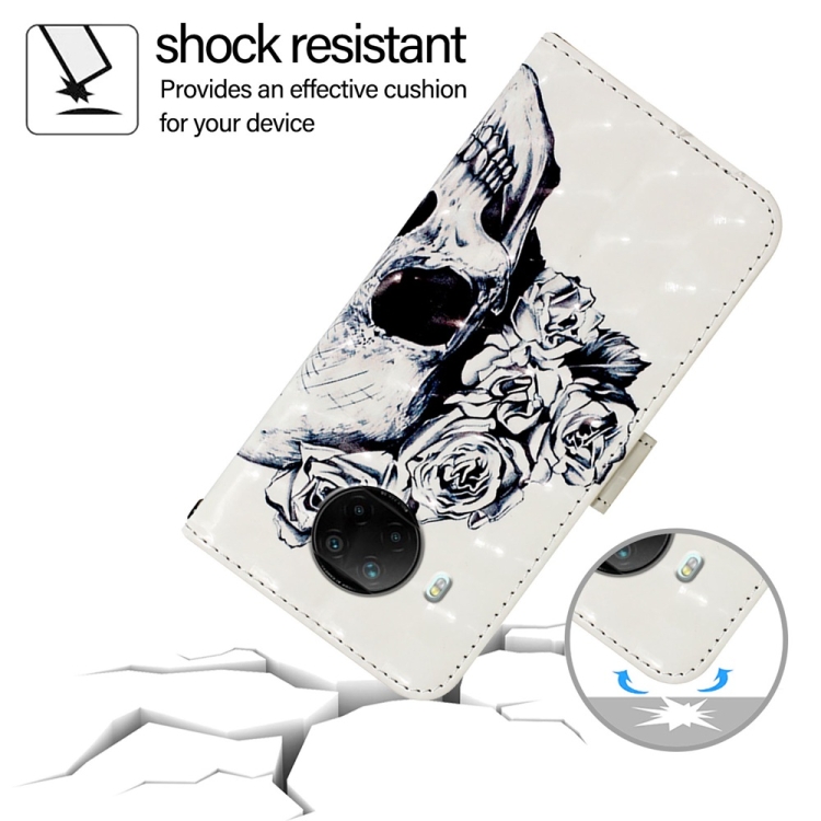 Para Xiaomi Mi 10T Lite 5G Pintura 3D Funda de Teléfono de Cuero con Tapa Horizontal (Calavera)