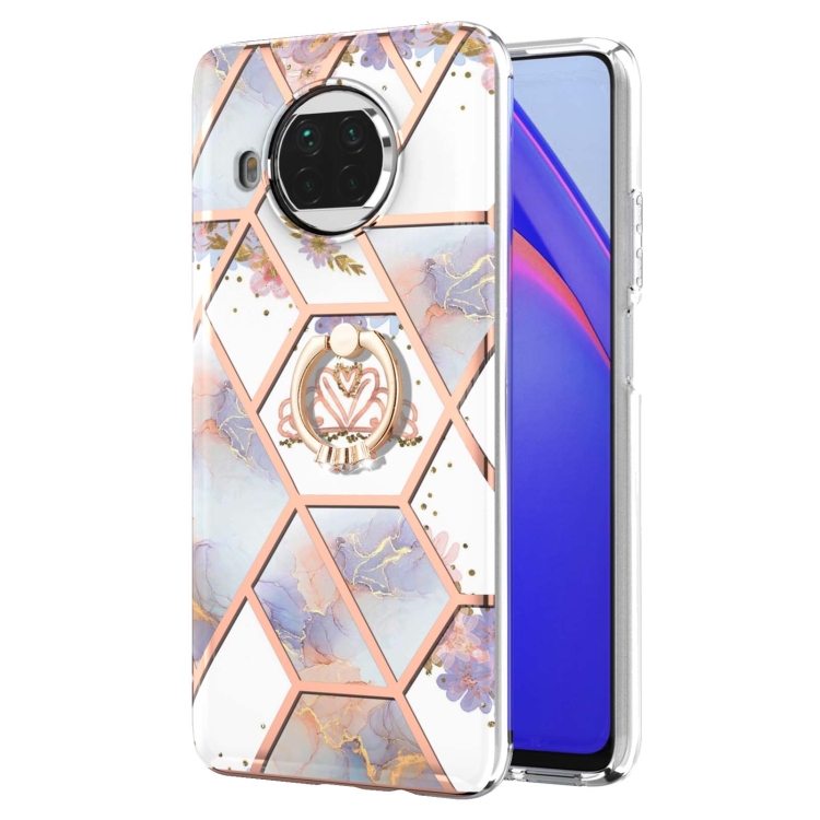 Para Xiaomi Mi 10T Lite Electroplating Patrón de mármol de mármol TPU Funda a prueba de golpes con soporte de anillo de diamantes de imitación (corona imperial)