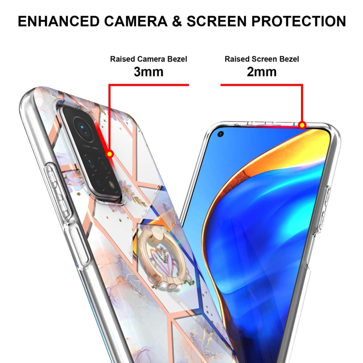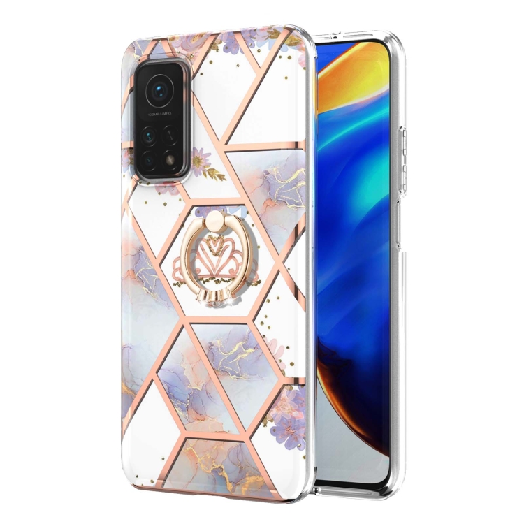 Para Xiaomi MI 10T / MI 10T PRO Empalme de electrochaplating Patrón de mármol TPU Funda a prueba de golpes con soporte de anillo de diamantes de imitación (corona imperial)