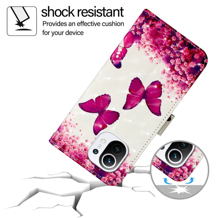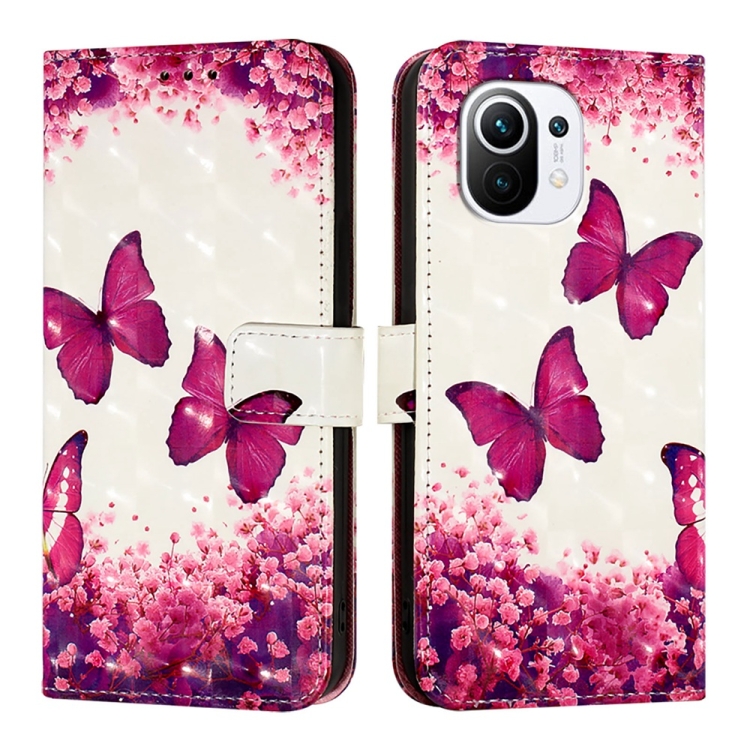 Para Xiaomi Mi 11 Funda para Teléfono de Cuero con Tapa Horizontal con Pintura 3D (Mariposa Rosa)