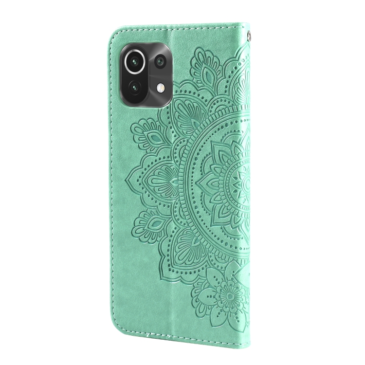 Para Xiaomi Mi 11 Lite 7-Petal Flores Patrón de Estampado de Estampado Horizontal Flip Pu Funda de Cuero con Soporte y Ranuras para Tarjetas y Marco de Fotos (Verde)