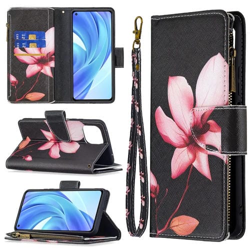 Para Xiaomi Mi 11 Lite Patrón de Dibujo de Color con Cremallera con Cremallera Horizontal Flip Funda con Soporte y Ranuras para Tarjetas y Billetera (Lotus)
