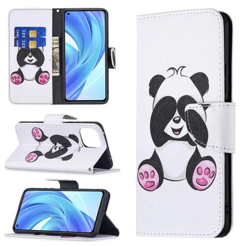 Para Xiaomi Mi 11 Lite Patrón de Dibujo de Color Horizontal Flip Funda de Cuero con Soporte y Tragamonedas y Billetera (Panda)