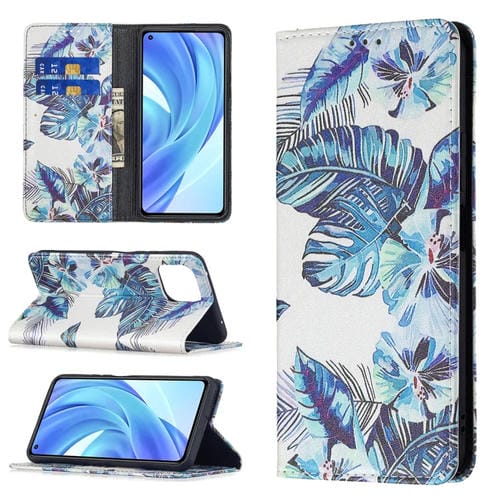 Para Xiaomi Mi 11 Lite Patrón de Dibujo de Color Invisible Magnético Horizontal Flip Pu Funda de Cuero con Soporte y Tragamonedas y Billetera (Hoja Azul)