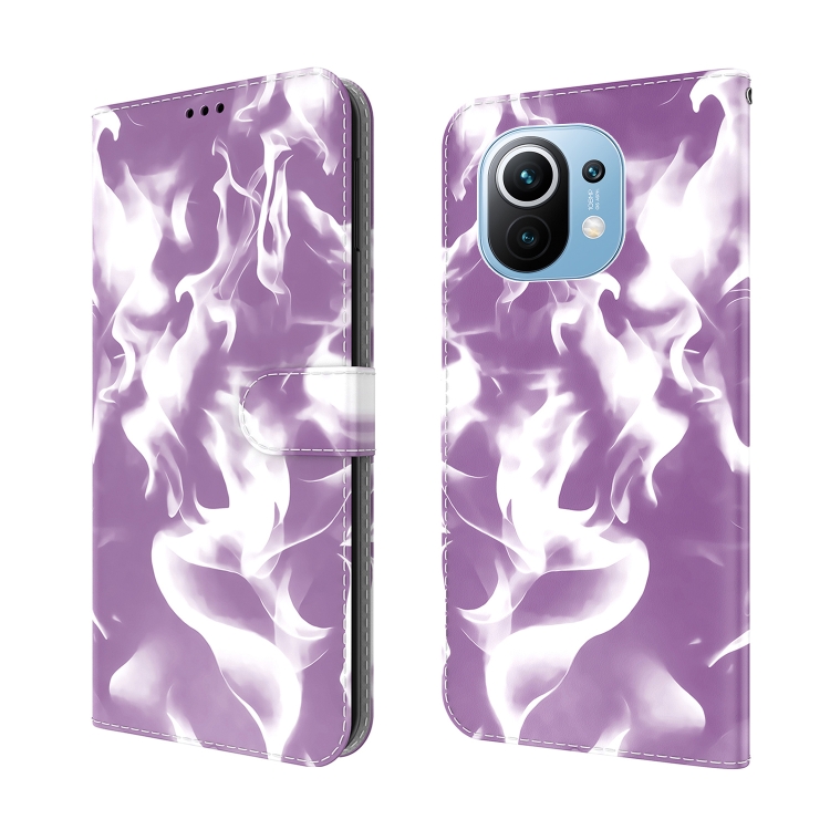 Para Xiaomi Mi 11 Nube Fog Pattern Horizontal Flip Funda de Cuero con Soporte y Ranura para Tarjeta y Billetera (Púrpura)