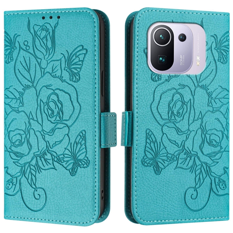 Para Xiaomi Mi 11 Pro Funda de Teléfono de Cuero Antirrobo Rfid con Relieve Rosa (Azul Claro)
