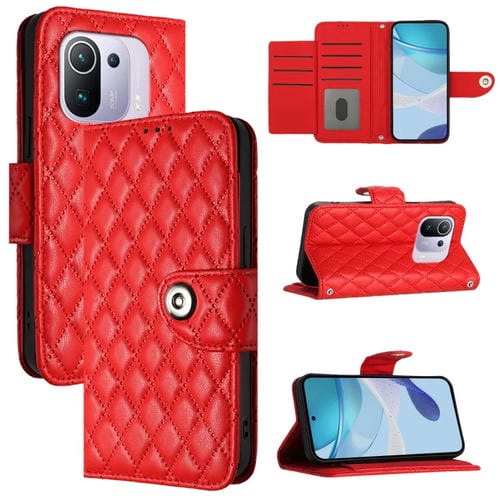 Para Xiaomi Mi 11 Pro Funda de Teléfono de Cuero con Tapa con Textura Rómbica y Cordón (Rojo)