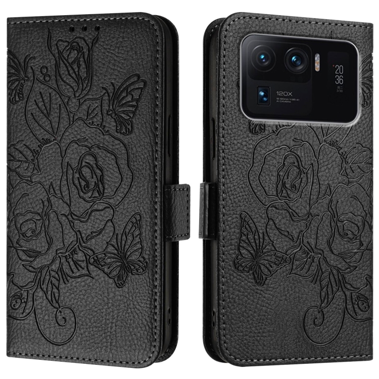 Para Xiaomi Mi 11 Ultra Embossed Rose Rfid Funda de Cuero Antirrobo para Teléfono (Negro)