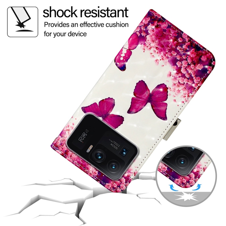 Para Xiaomi Mi 11 Ultra Funda de Teléfono de Cuero con Tapa Horizontal con Pintura 3D (Mariposa Rosa)