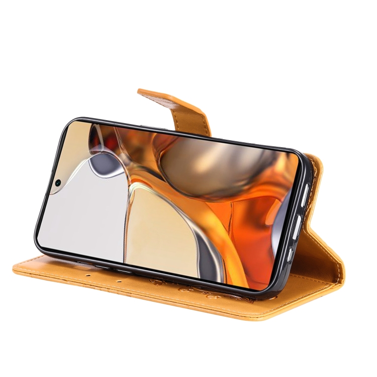 Para Xiaomi MI 11T / 11T PROTECTO PRO PULSADO Patrón de mariposa Horizontal Flip PU Funda de cuero con soporte y ranuras para tarjetas y cordón (amarillo)