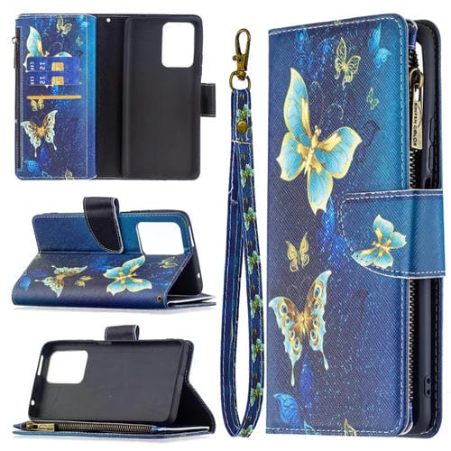 Para Xiaomi Mi 11T Patrón de Dibujo de Color Cremallera con Cremallera Horizontal Funda de Cuero con Soporte y Tragamonedas y Billetera (Mariposa de Oro)