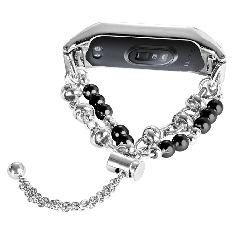 Banda de Reloj Metal para Xiaomi Mi Band 3 / 4 con Cadena de Perlas Dobles (Negro Plateado)
