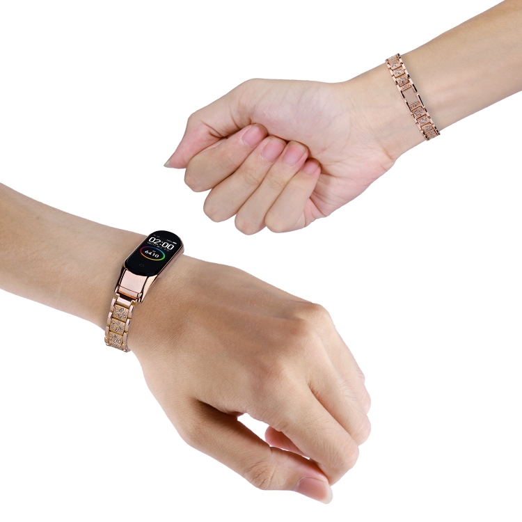 Pulsera Metal Full Diamond Three-Beads para Xiaomi Mi Band 4/3 (Oro Rosa)