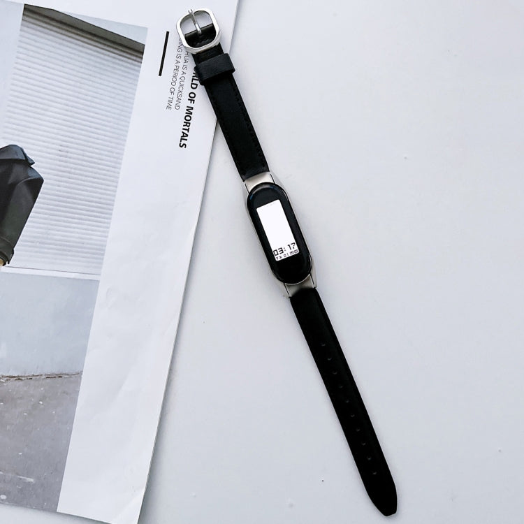 Correa de Reloj para Xiaomi Mi Band 5/6 de Cuero Genuino (Negro)