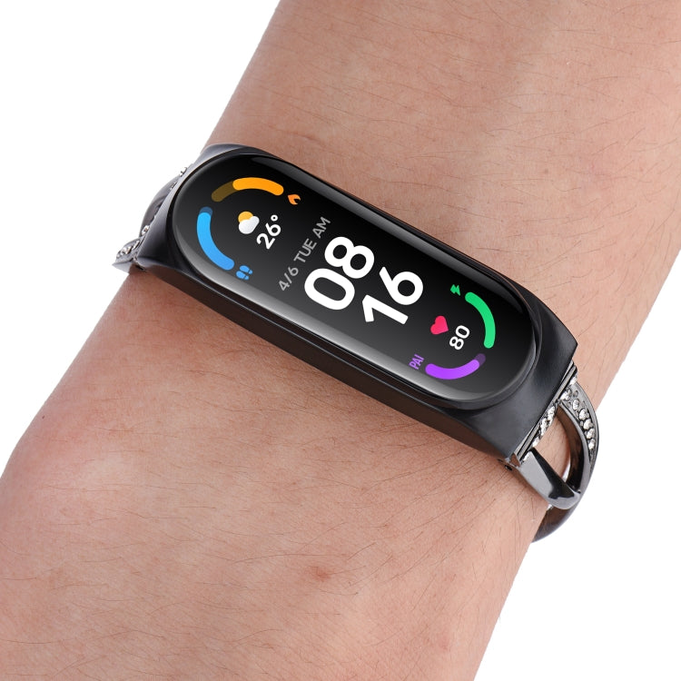 Para Xiaomi Mi Band 6/5 Band de Aleación de aleación de diamantes en forma de X (negro)