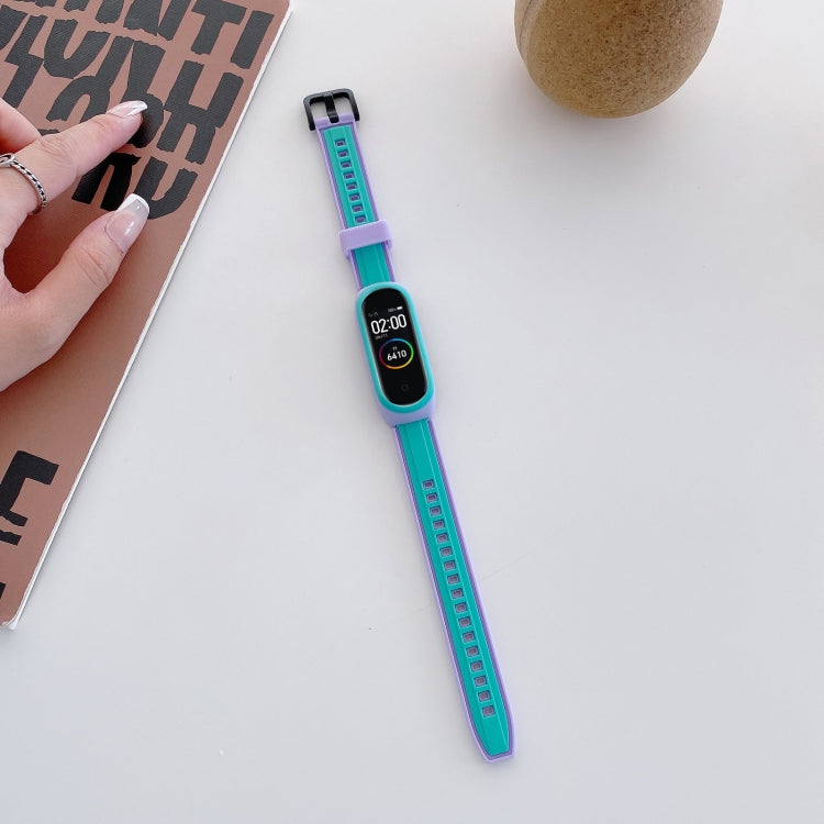 Para Xiaomi Mi Band 6 /5 Universal de muñeca de reemplazo de silicona de dos colores (azul+púrpura)
