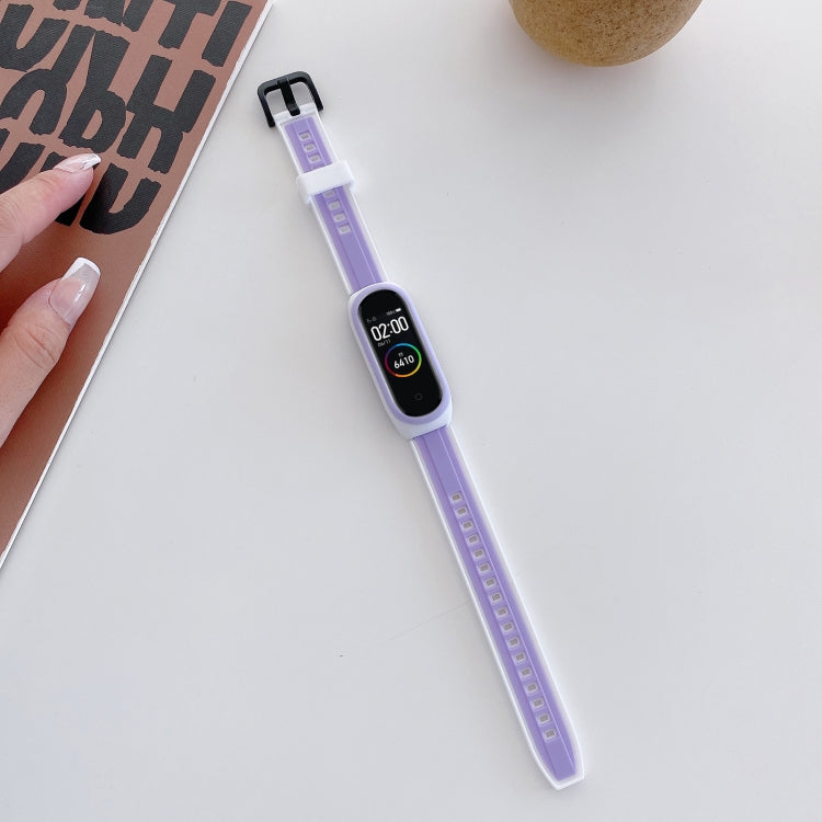 Para Xiaomi Mi Band 6 /5 Universal de muñeca de reemplazo de silicona de dos colores (púrpura+blanco)