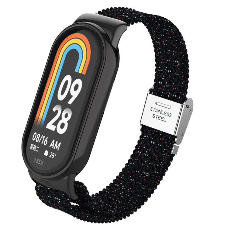 Correa para Xiaomi Mi Band 8 con Cabeza de Metal y Hebilla de Acero Trenzado de Nylon Ajustable (Starlight Black)
