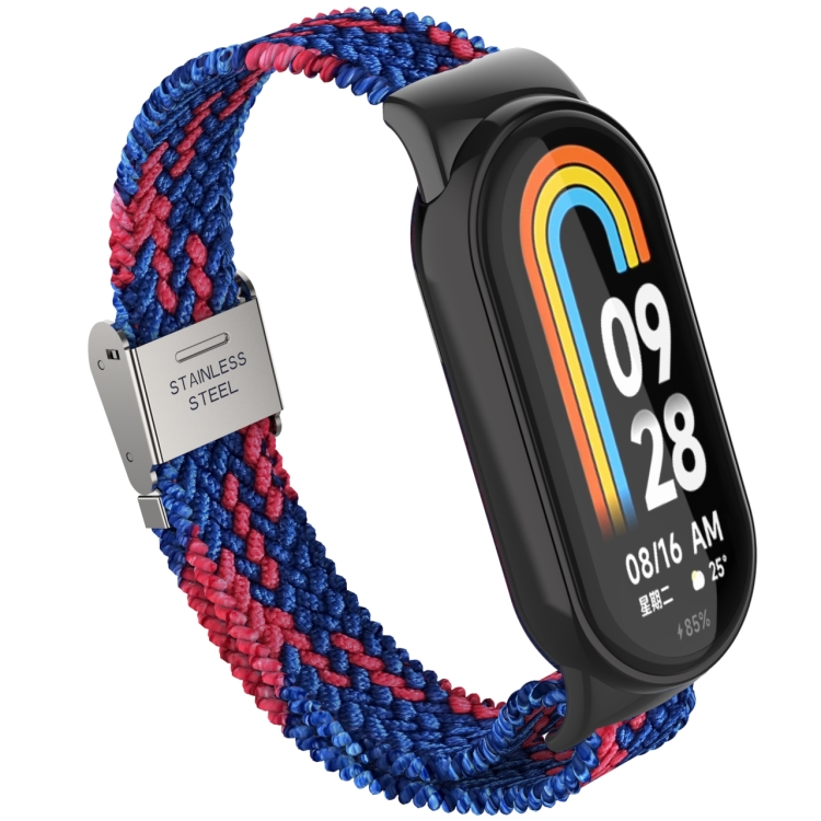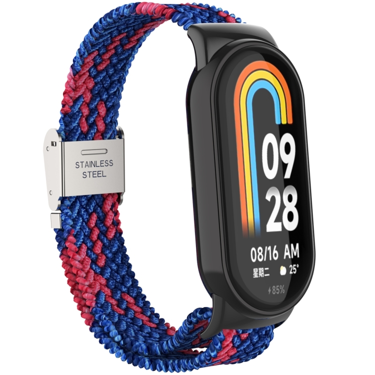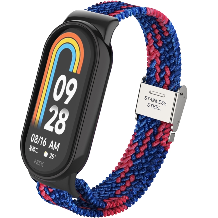 Correa para Xiaomi Mi Band 8 Metal Head con Hebilla de Acero y Nailon Ajustable (Azul Rojo)